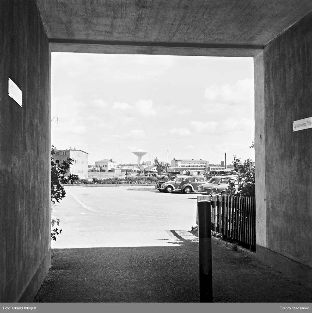 Vy genom port i Baronbackarna mot Svampen, 1960-tal