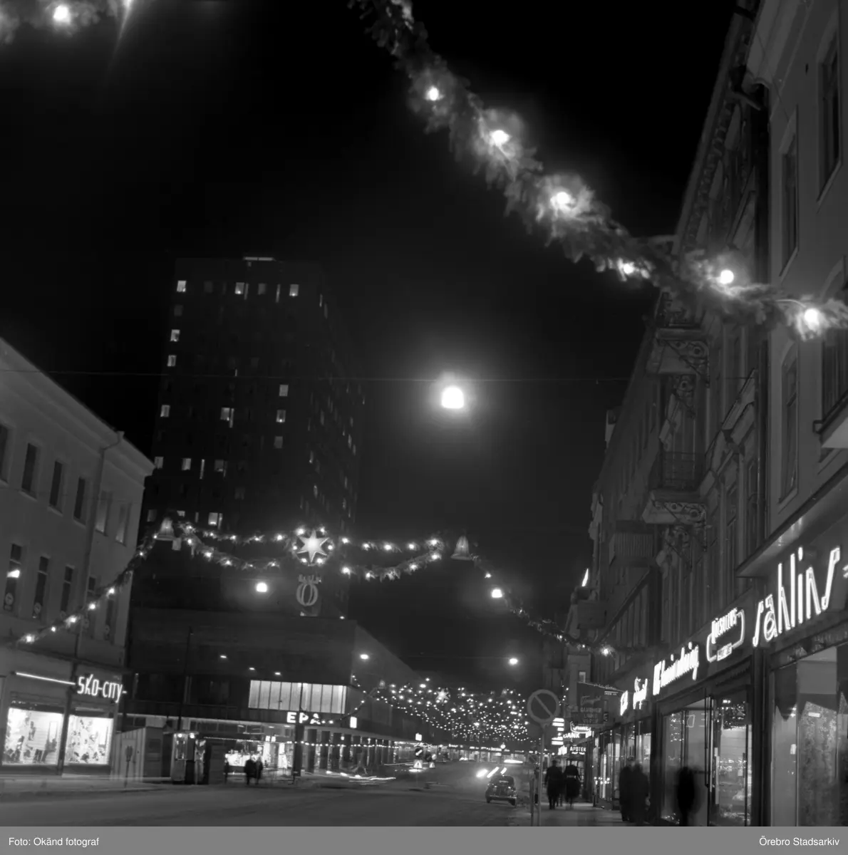 Julbelysning på Drottninggatans affärer och Krämaren, 1965