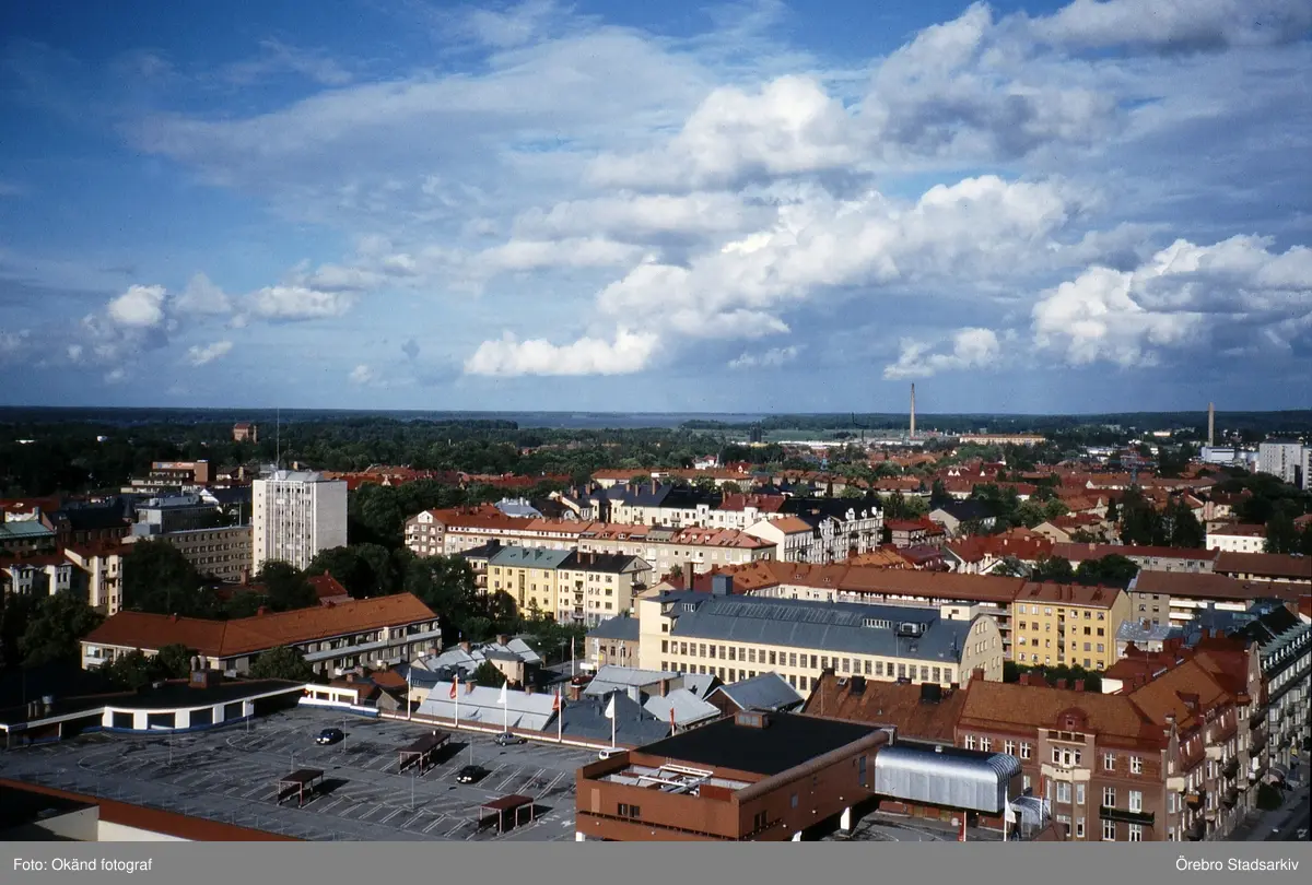 Vy från Svampen över hustaken mot öster, 1980-tal