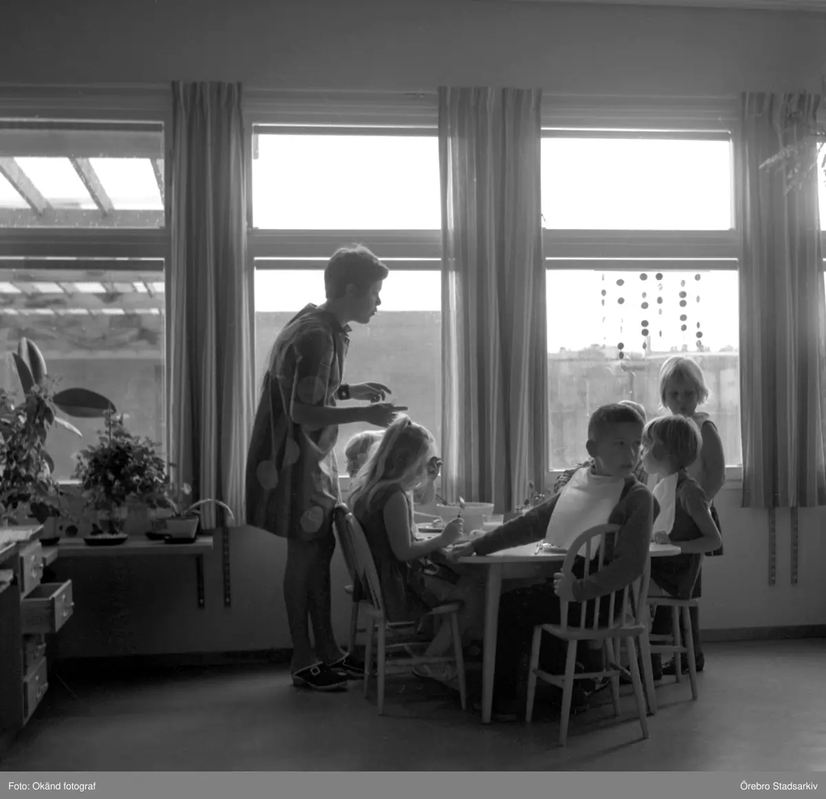 De äldre dagisbarnen äter lunch på daghemmet Sidensvansen, oktober 1967