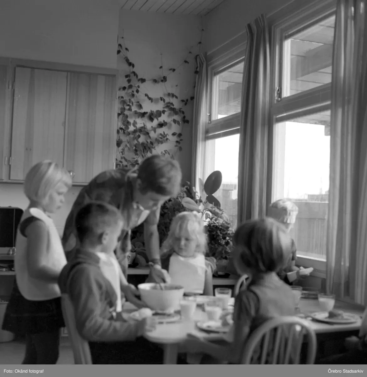 Dagisfröken serverar lunch på daghemmet Sidensvansen, oktober 1967