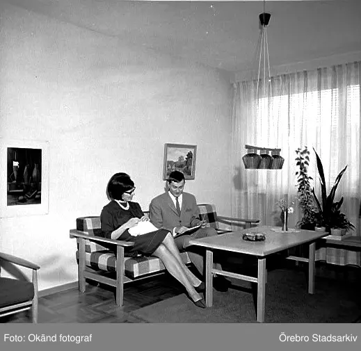 Sittande par i vardagsrum på Tengvallsgatan, 1960-tal