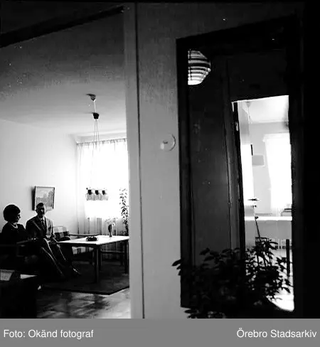 Del av hall och kök i visningslägenhet på Tengvallsgatan, 1960-tal
