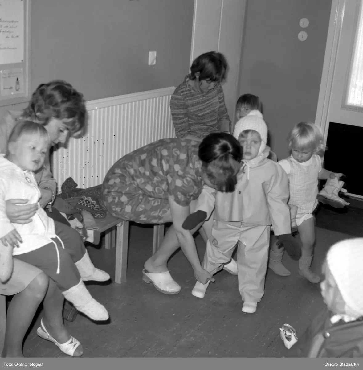 Påklädning av ytterkläder på daghem i Varberga, oktober 1967