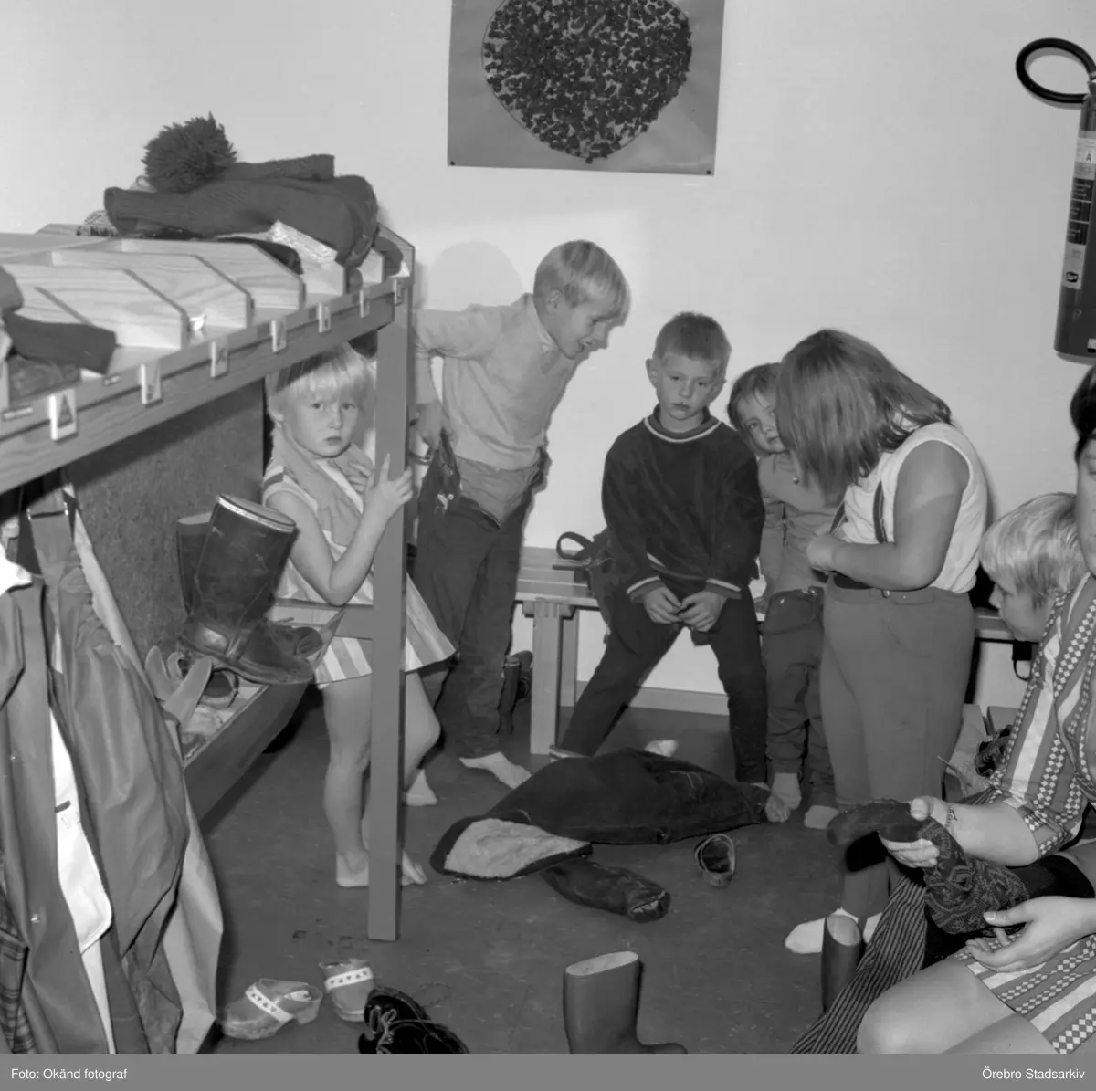 Ombyte efter utomhuslek på daghem i Varberga, oktober 1967