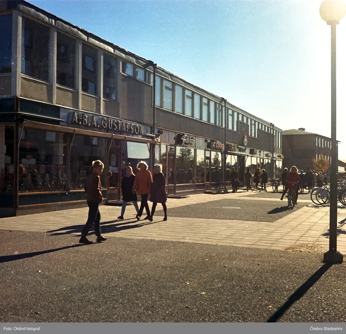 Ungdomar utanför affärer i Baronbackarnas centrum, 1960-tal