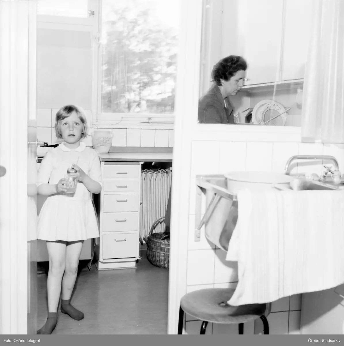 Fru Enbrant med dotter i köket i Baronbackarna, 1960-tal