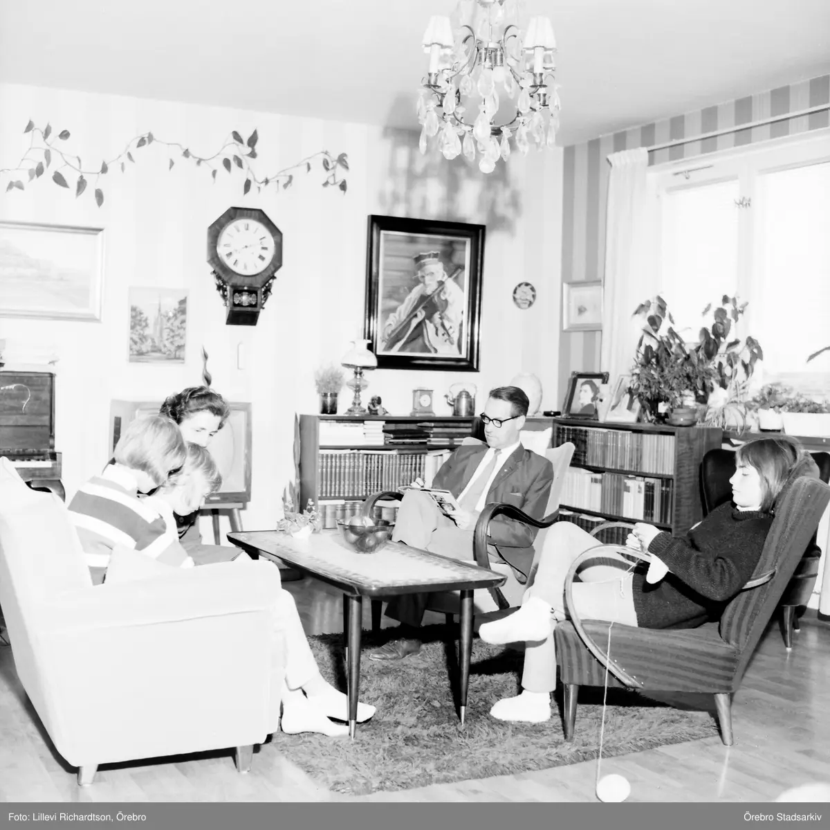 Familjen Enbrant i vardagsrummet i Baronbackarna, 1960-tal