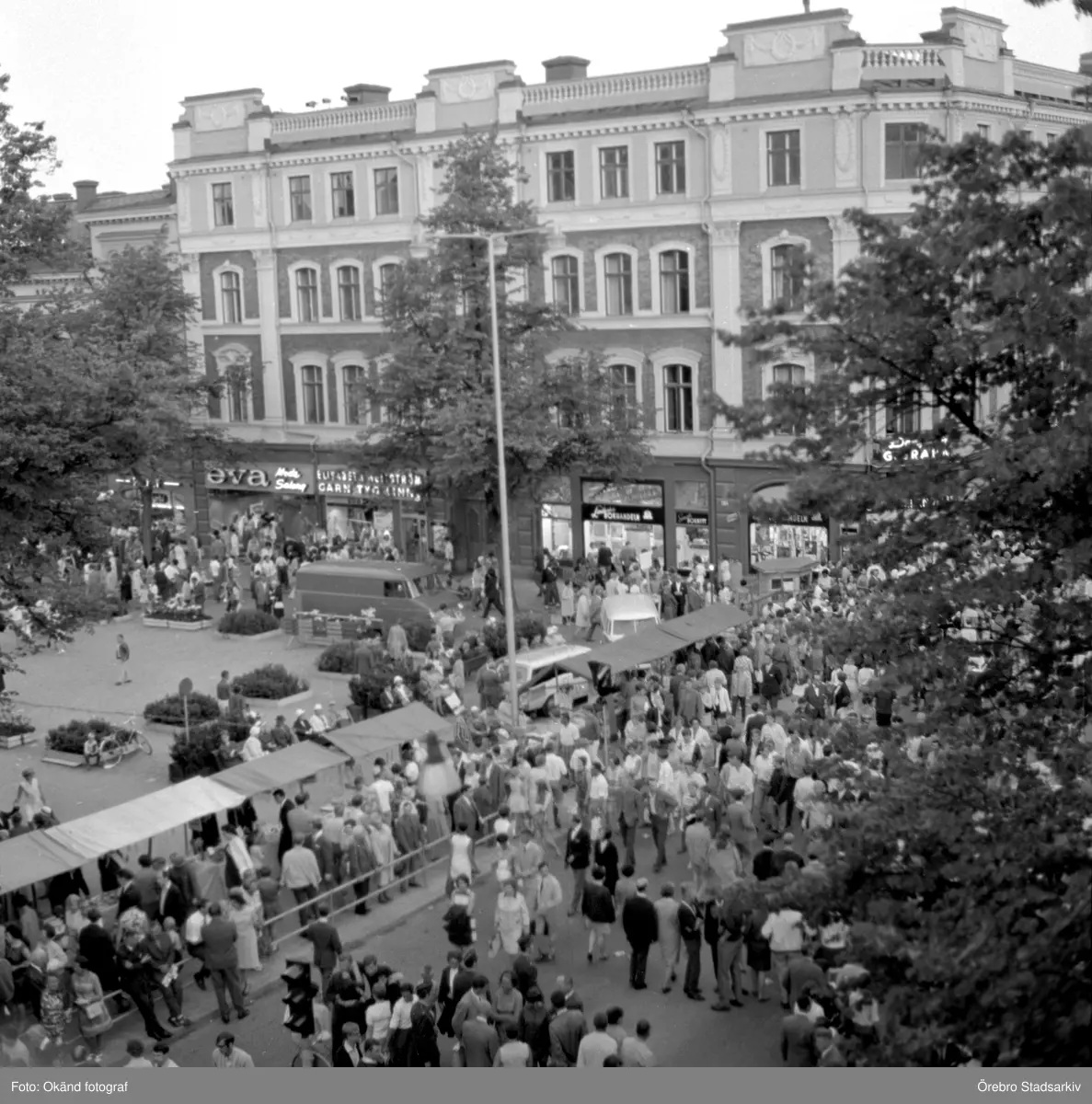 Marknadsstånd längst Drottninggatan på marknadsafton, 1970-tal