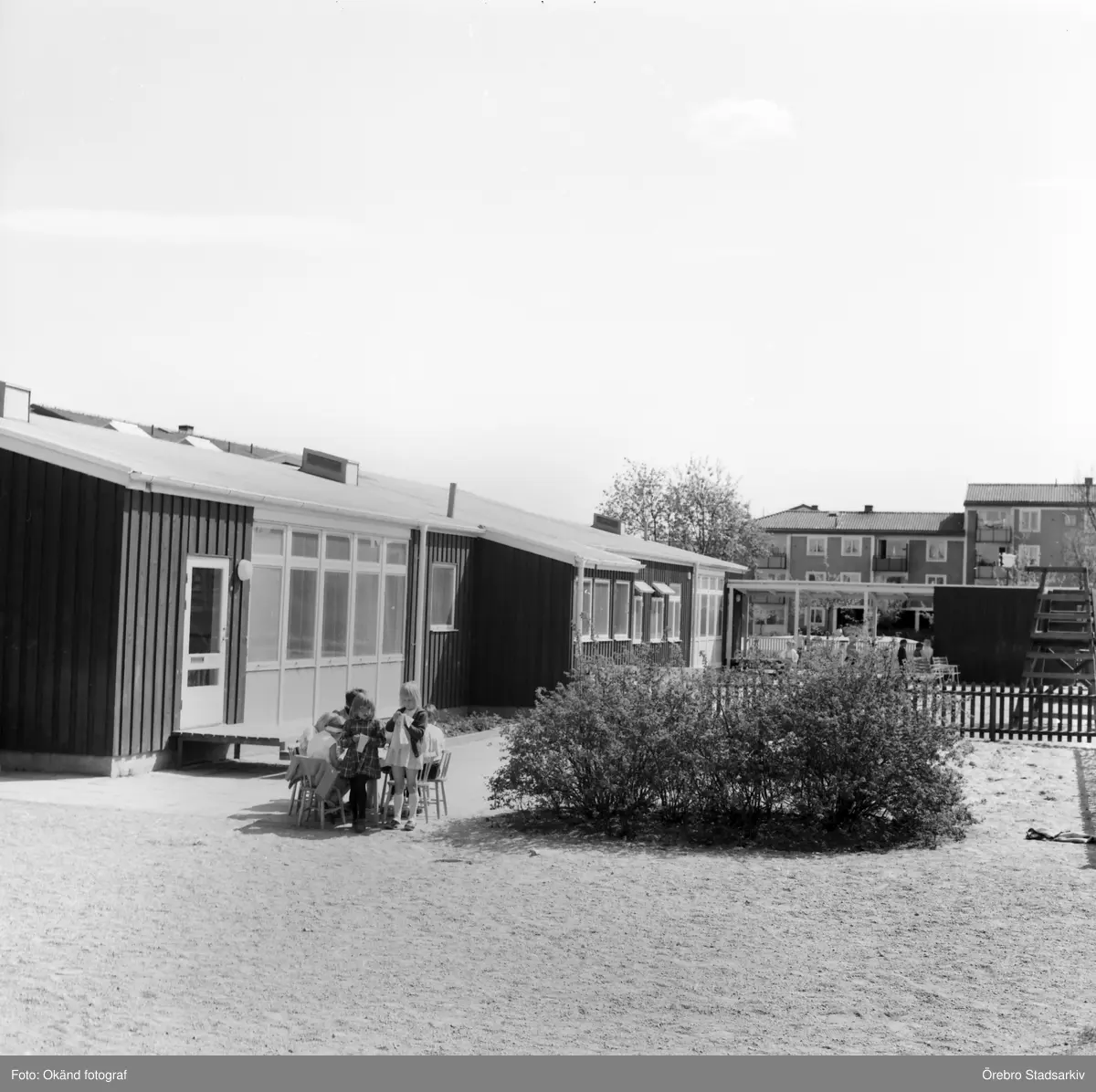 Barn leker utanför daghem i Baronbackarna, 1960-tal