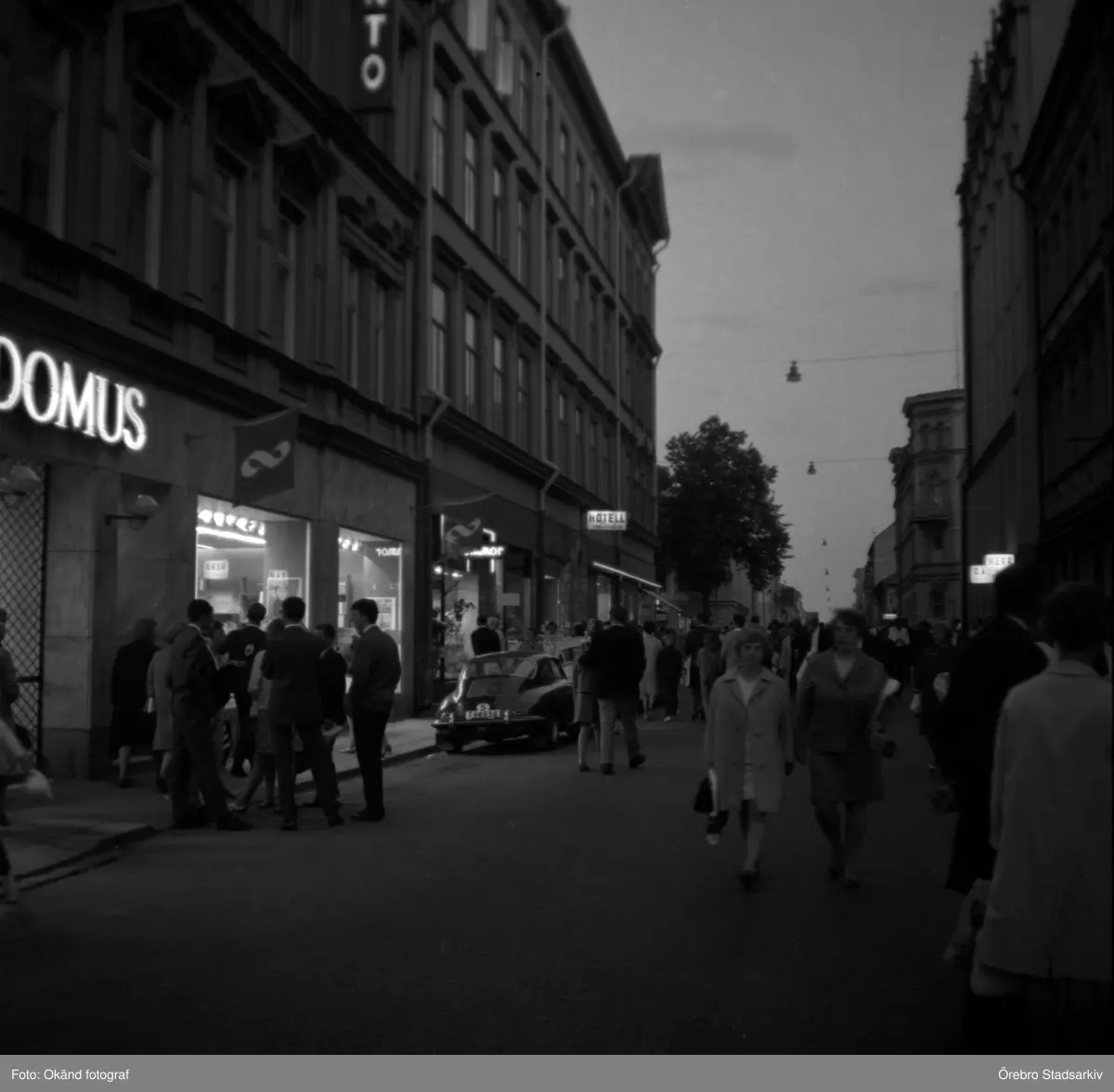 Marknadsbesökare utanför Domus på marknadsafton, 1970-tal