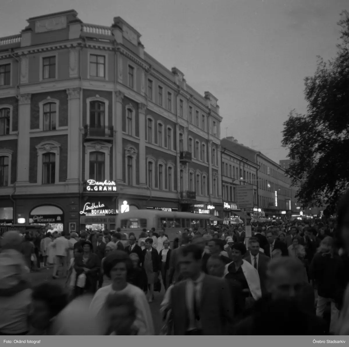 Drottninggatan full av besökare på marknadsafton, 1970-tal