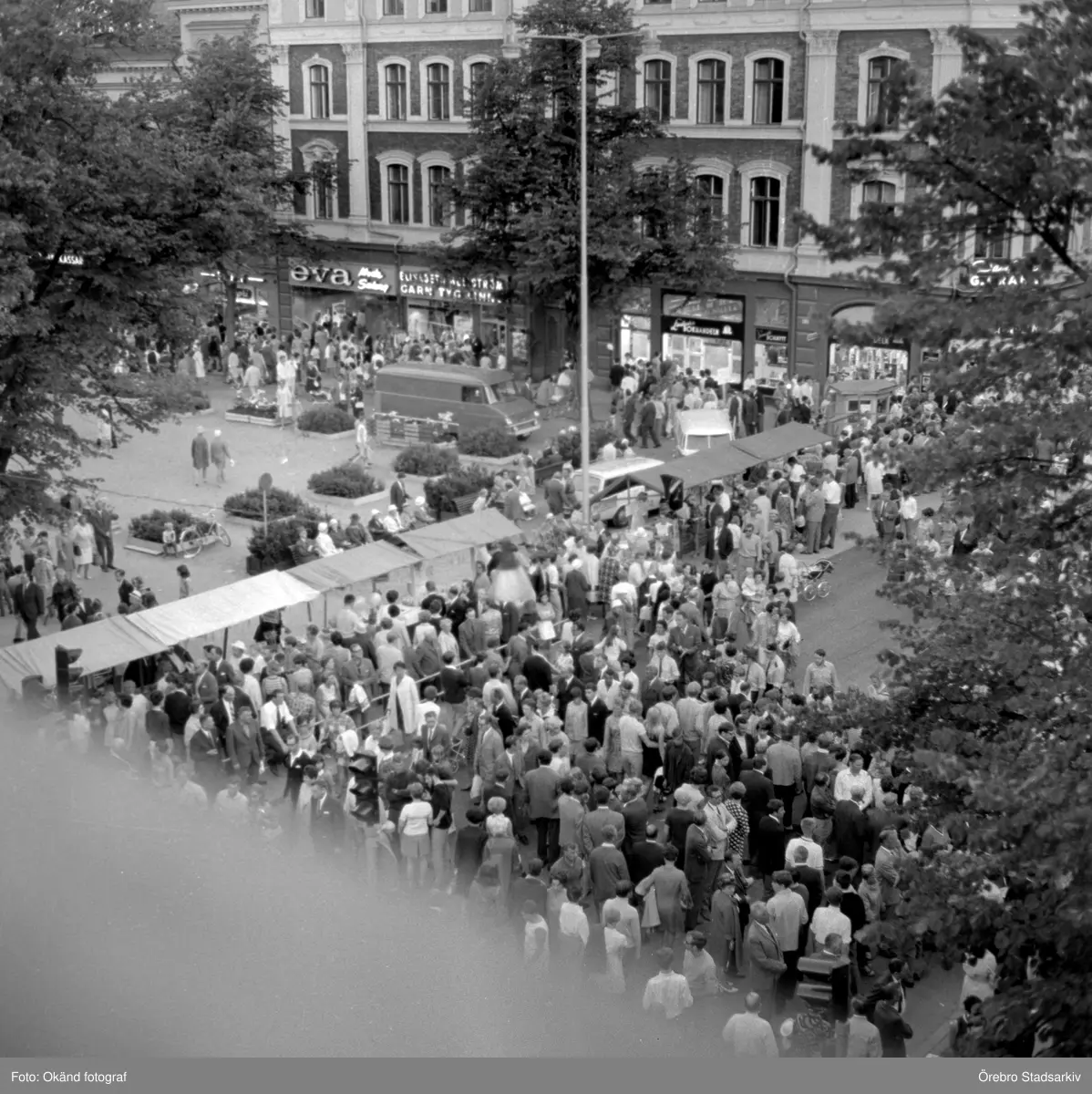 Vimmel på marknadsafton sett från fönster, 1970-tal