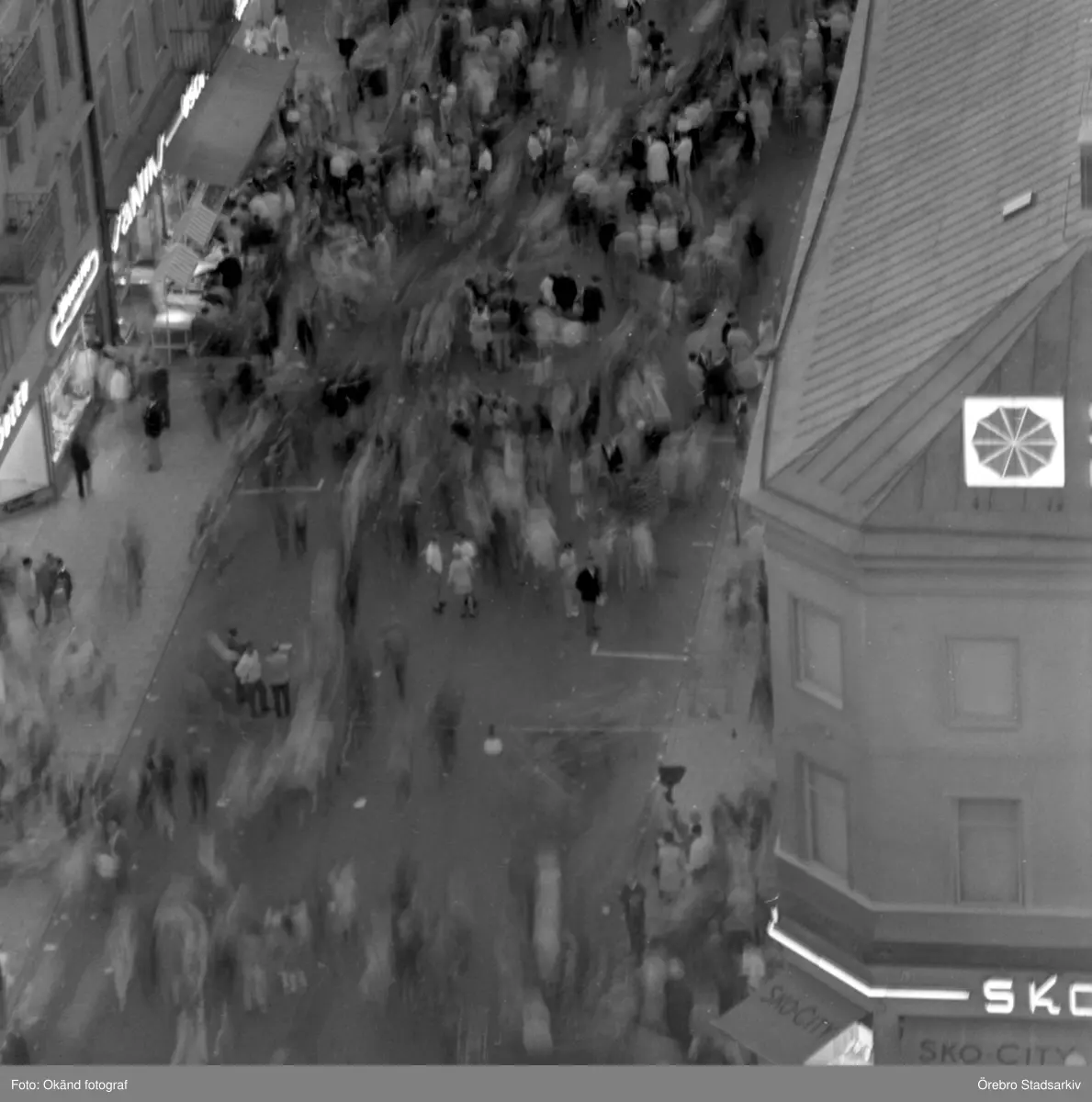 Besökarna rör sig snabbt längst Drottninggatan på marknadsafton, 1970-tal