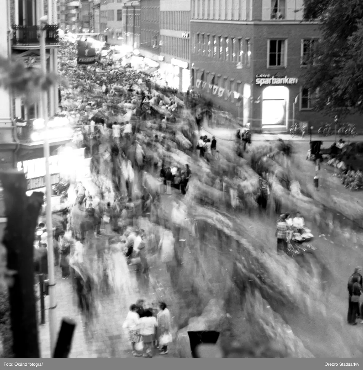 Snabba rörelser bland besökarna på marknadsafton, juni 1972