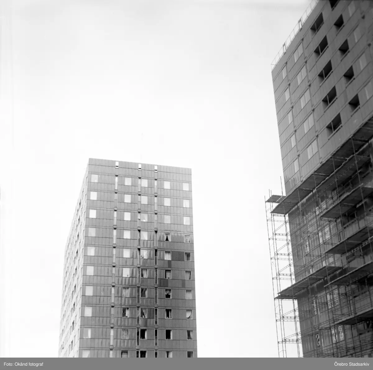 Byggställningar runt en av Krämarens höghus, 1960-tal