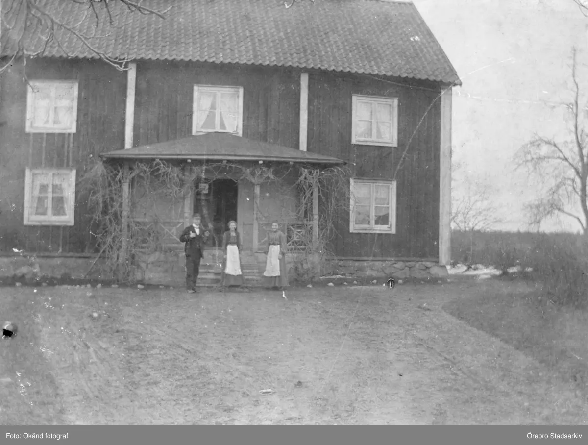 Familjefoto framför hus, Frövi 1908