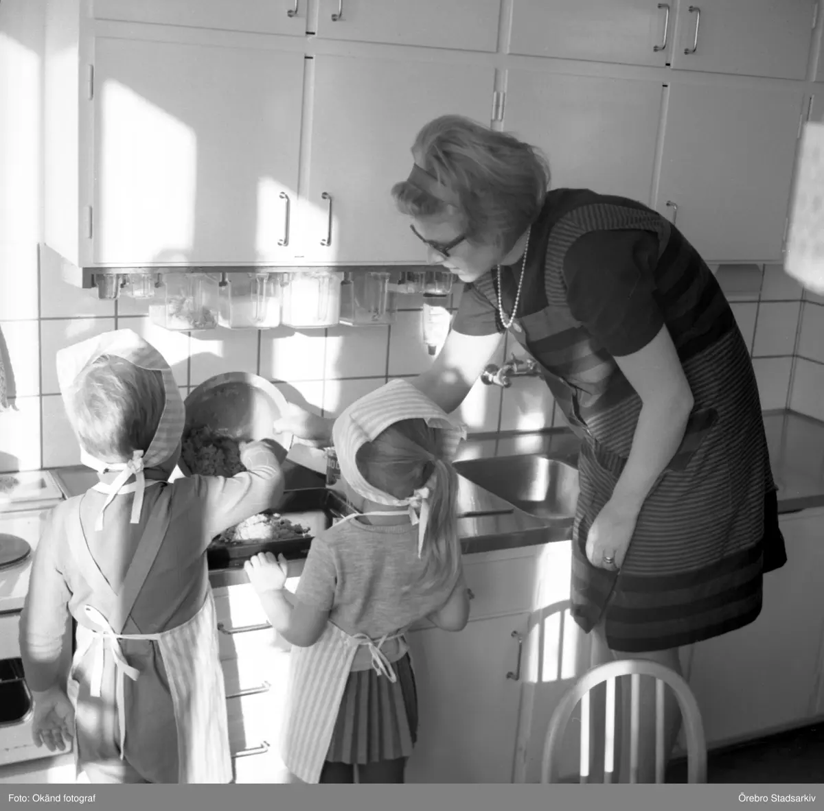 Barn och fröken bakar på daghem i Varberga, oktober 1967