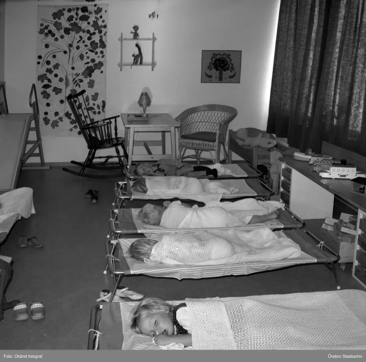 Sovande barn på vila på daghem i Varberga, oktober 1967