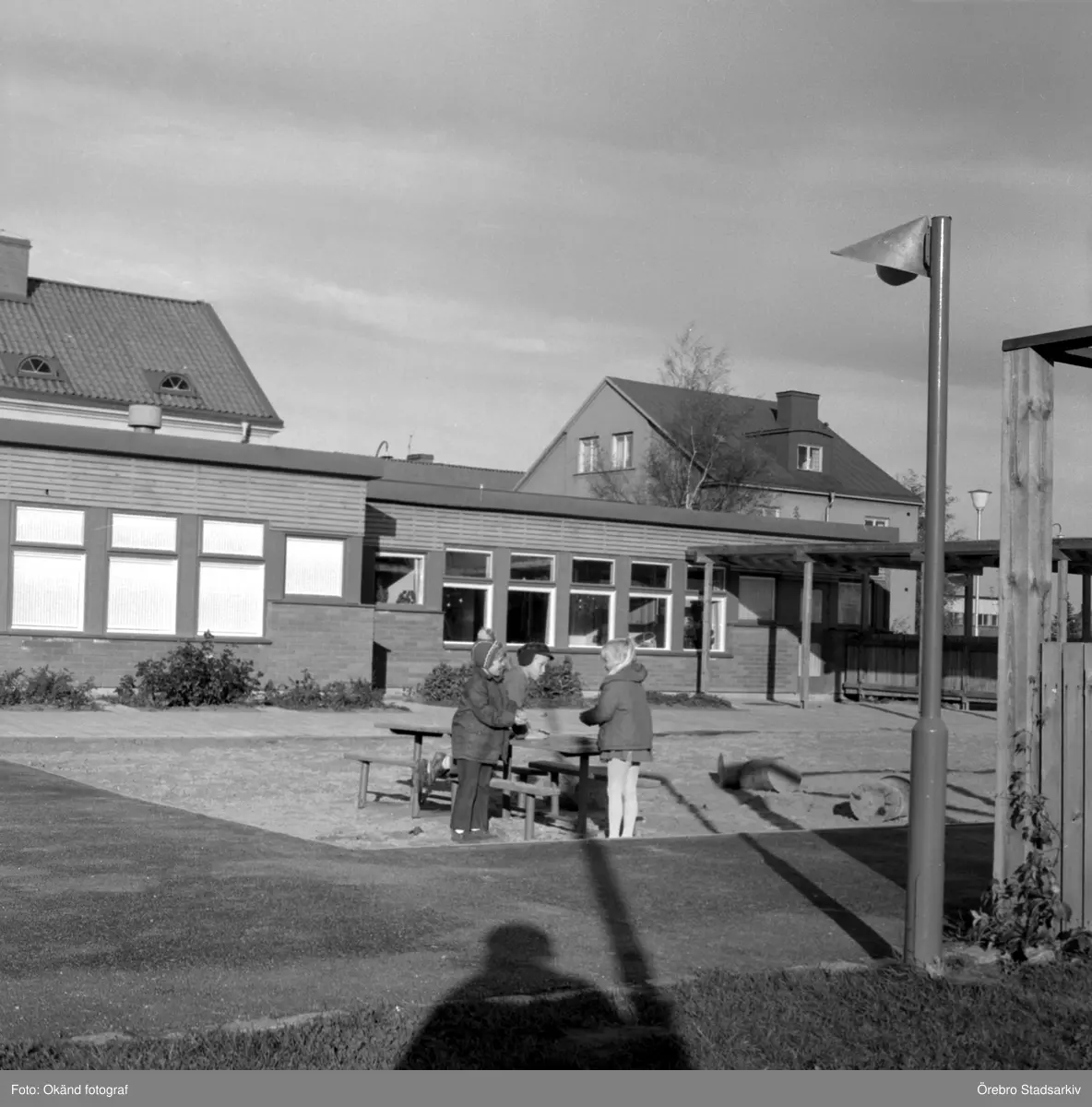 Barn leker i sandlådan vid daghemmet Sidensvansen, oktober 1967