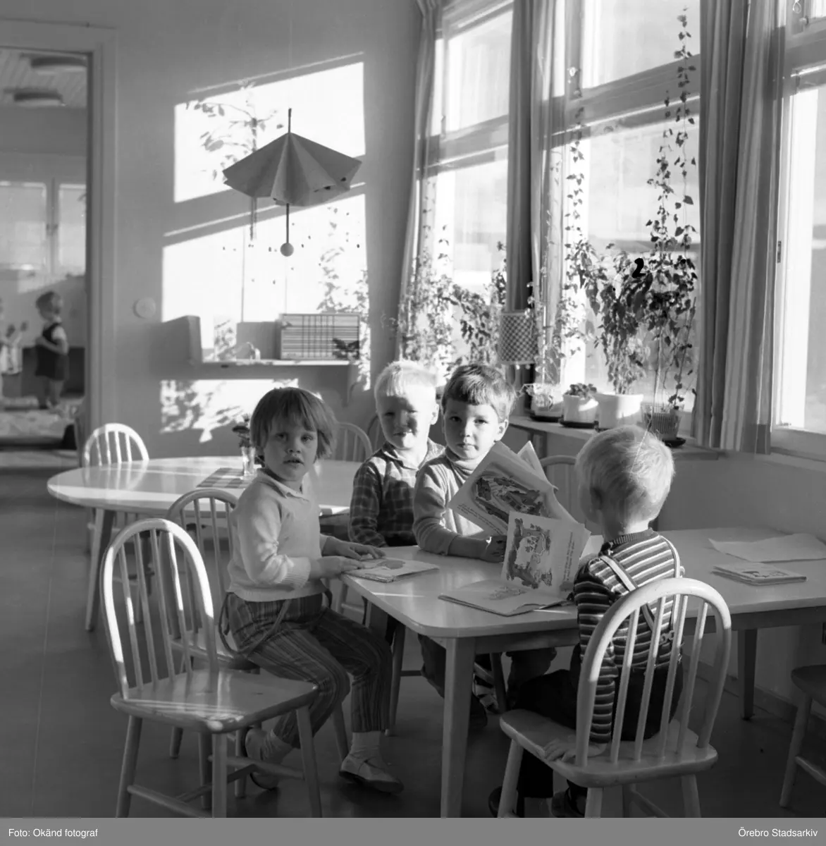 Barn med sagoböcker på daghemmet Sidensvansen, oktober 1967