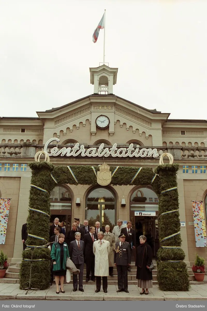 Samling på centralstationens trappa vid invigning av Mälarbanan, 1997-10-13