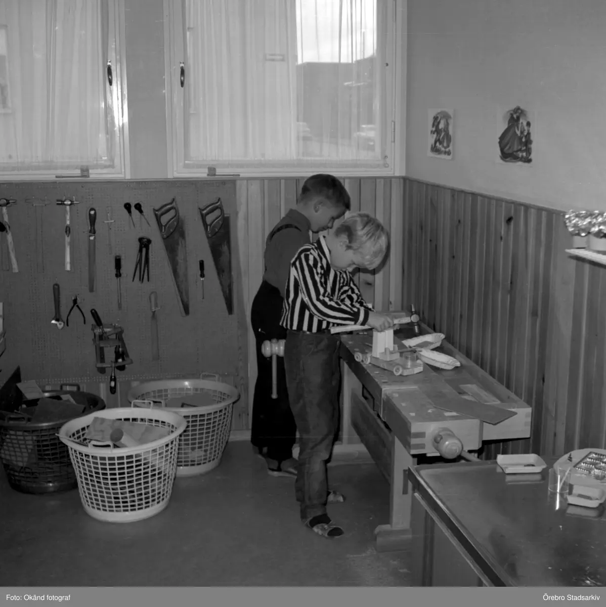 Pojkar snickrar på daghemmet Sidensvansen, oktober 1987
