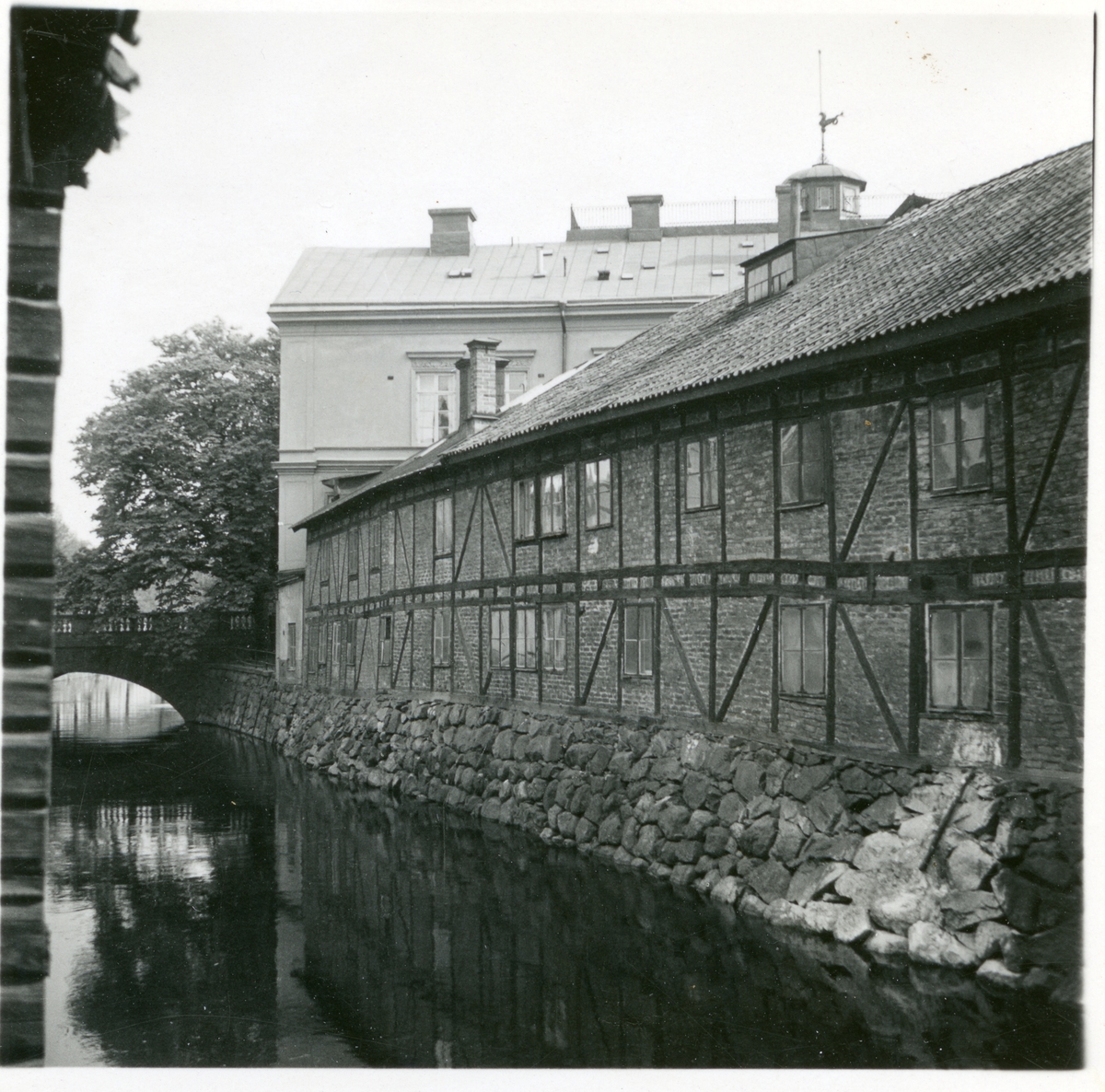 Parti av Svartån med korsvirkeshus.