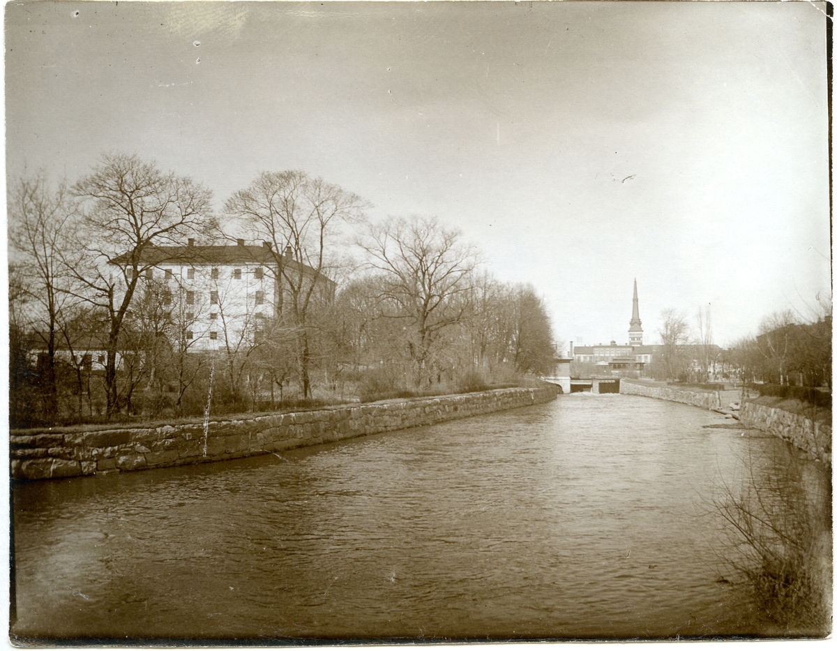 Vy över Svartån med Slottet, från Järnvägsbron.