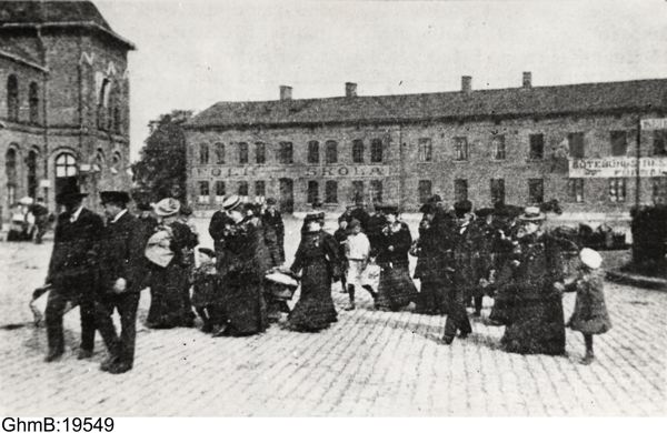 Drottningtorget. Emigranter som anlänt till Göteborg.