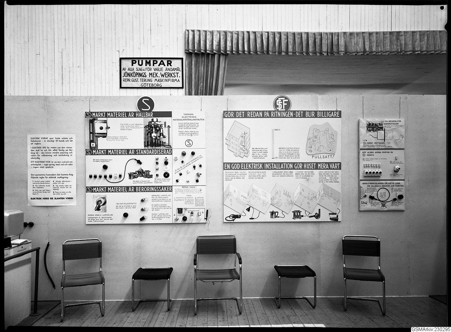 Monter på Svenska Mässan, utställare, SFE, Svenska Elektrikerförbundet.