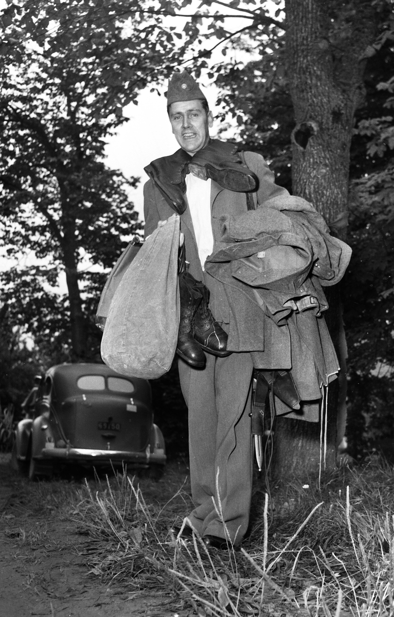 Linköpingsbon Gustav Wik har just fått sin utrustning för repetitionsövning.