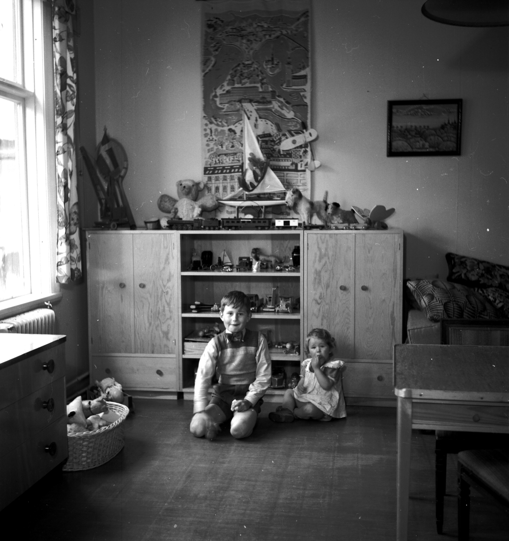 Titel: Två barn i ett lekrum.