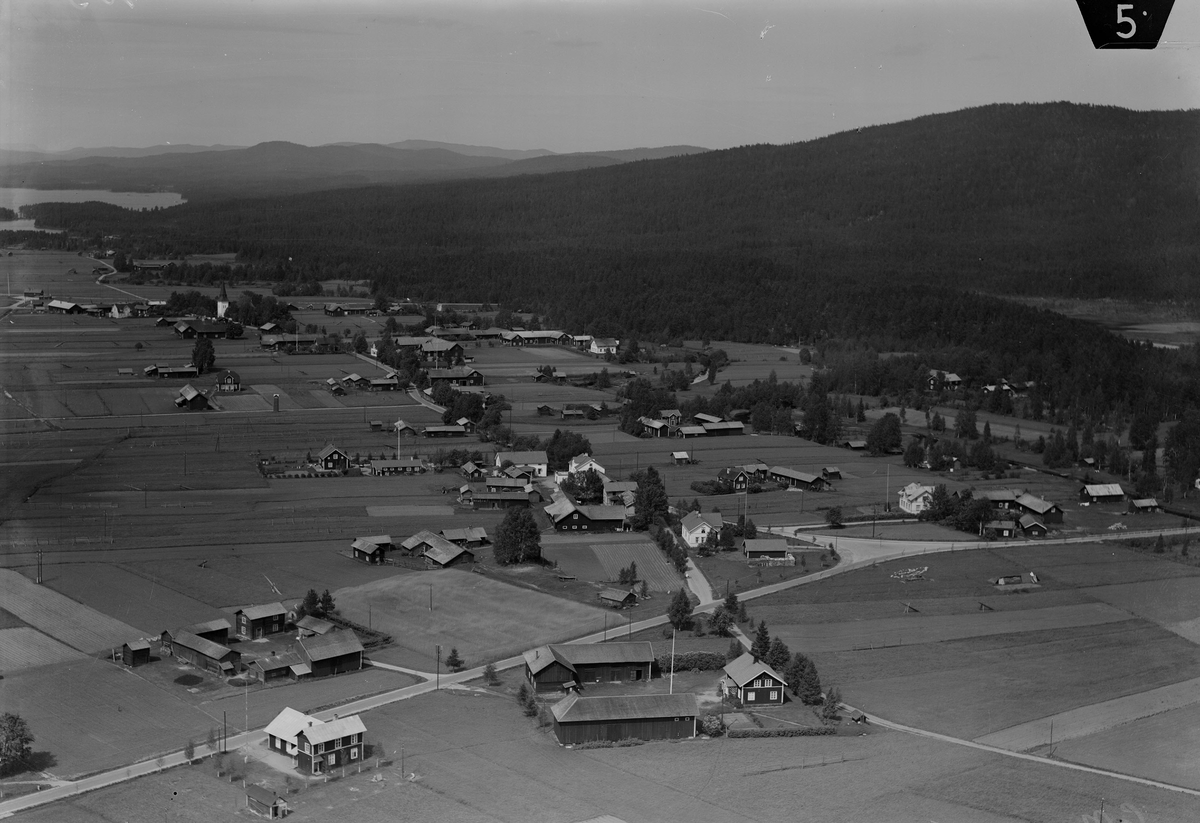 Flygfoto över Äppelbo. Ovanheden med Hunflen och Busjön.