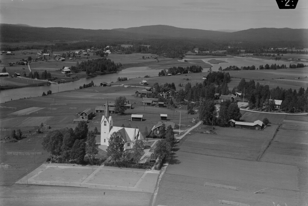 Flygfoto över Yttermalung. Läs mer om Yttermalungs kapell i boken: Dalarnas kyrkor i ord och bild.