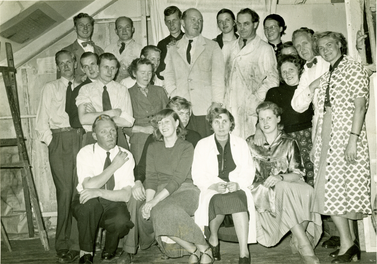 Gruppbild Gamla Toltorpsskolan. Stående från vänster nr 4 Börge Hovedskou (1910-1966) och hans elever i Mölndals Målarskola.