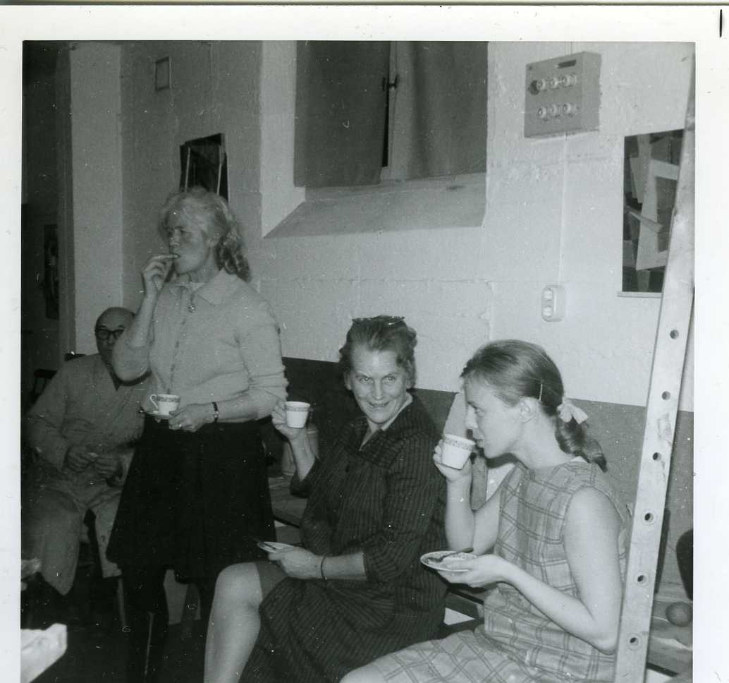 Lärare Ebbe Gustafsson sittande till vänster, stående Margot Johansson