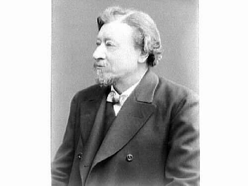 Ateljéporträtt av smeden Carl Hammarqvist. Hans far smedmästaren Lars Andersson Hammarqvist startade smedjan i kv Hantverkaren vid Borgmästaregatan 1879.