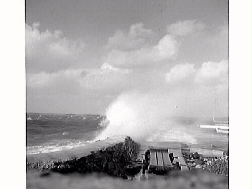 Höststormen i september 1969. Samtliga båtar vid bryggan slet sig och spolades upp på land vid Ölmanäs-Gårda brygga.