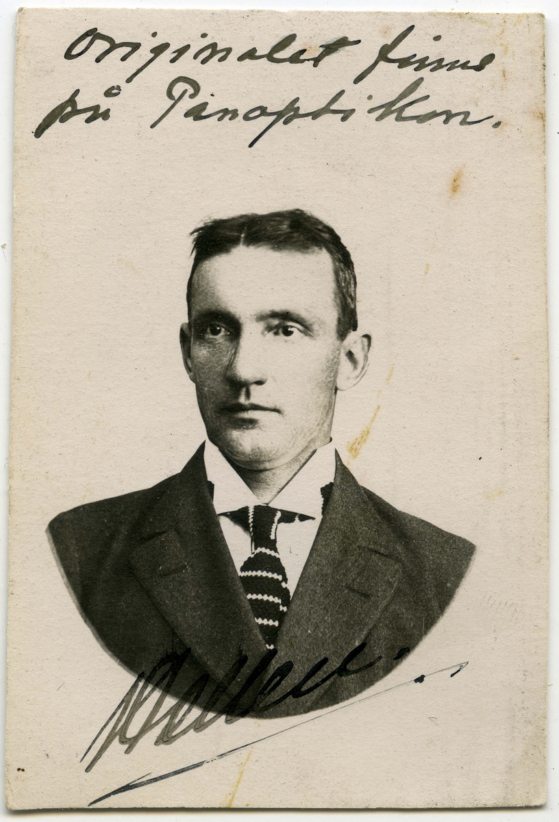 Porträtt på Hellen Ludvig Anton Hjertstedt, Sjökapten på Transatlantic, Göteborg. Född 29 september år 1981 och död 17 november år 1956.