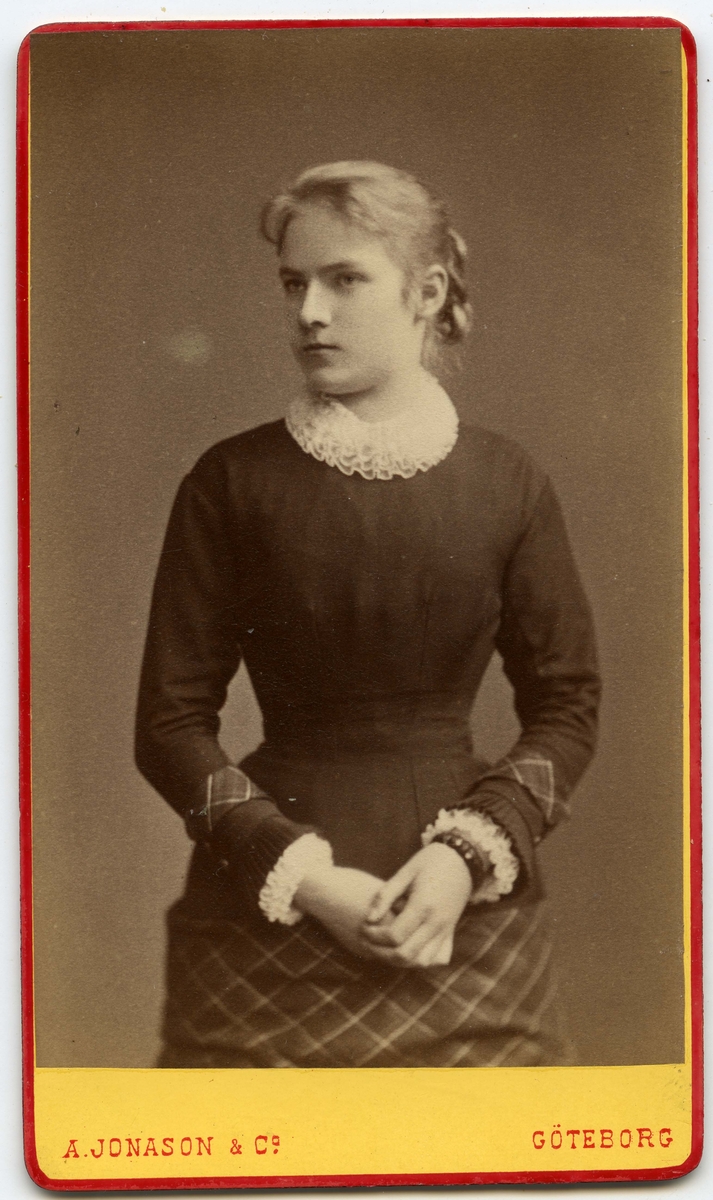 Porträtt på Clara Hjorth född Strandberg. Gift med läroverksadjunk Carl Hjorth.
