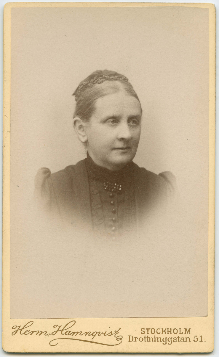 Titel: Porträtt på Fru Abela Kulberg född 24 oktober år 1838, död 30 maj år 1910. Gift med Claes Kulberg.