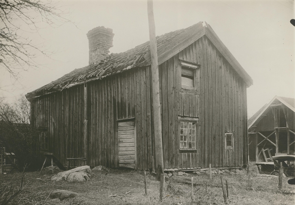 Gamla mjölnarstugan, baksidan. Å långväggen syns kökets bakdörr. Byggnaden riven.