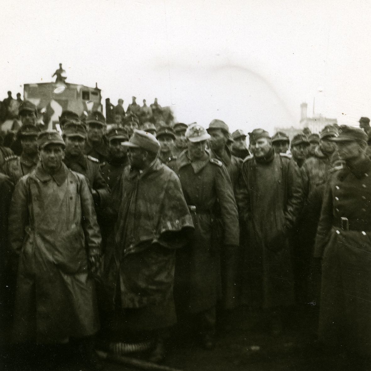 Balter i tysk uniform och tyskar. Ungefär 3000 soldater varav hälften kom till Kalmar från tyskarnas sista utpost i Kurland i Lettland.
