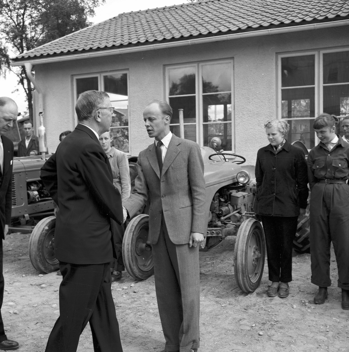 Titel: Kung Gustav VI Adolf på besök i Kungsgården i början av 1950-talet.