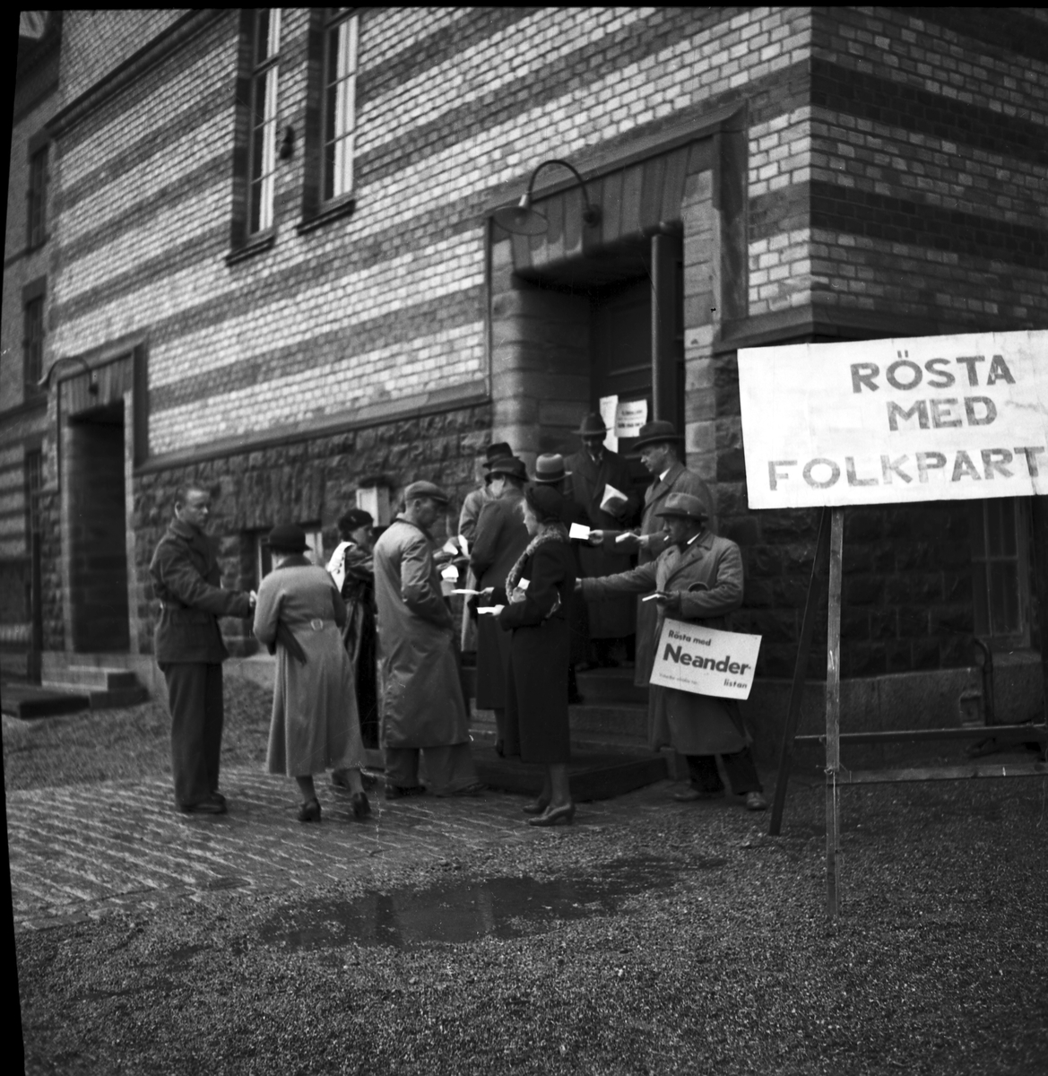Reportage för Gefle Dagblad. Stadsfullmäktigeval 1938 på Brynässkolan
