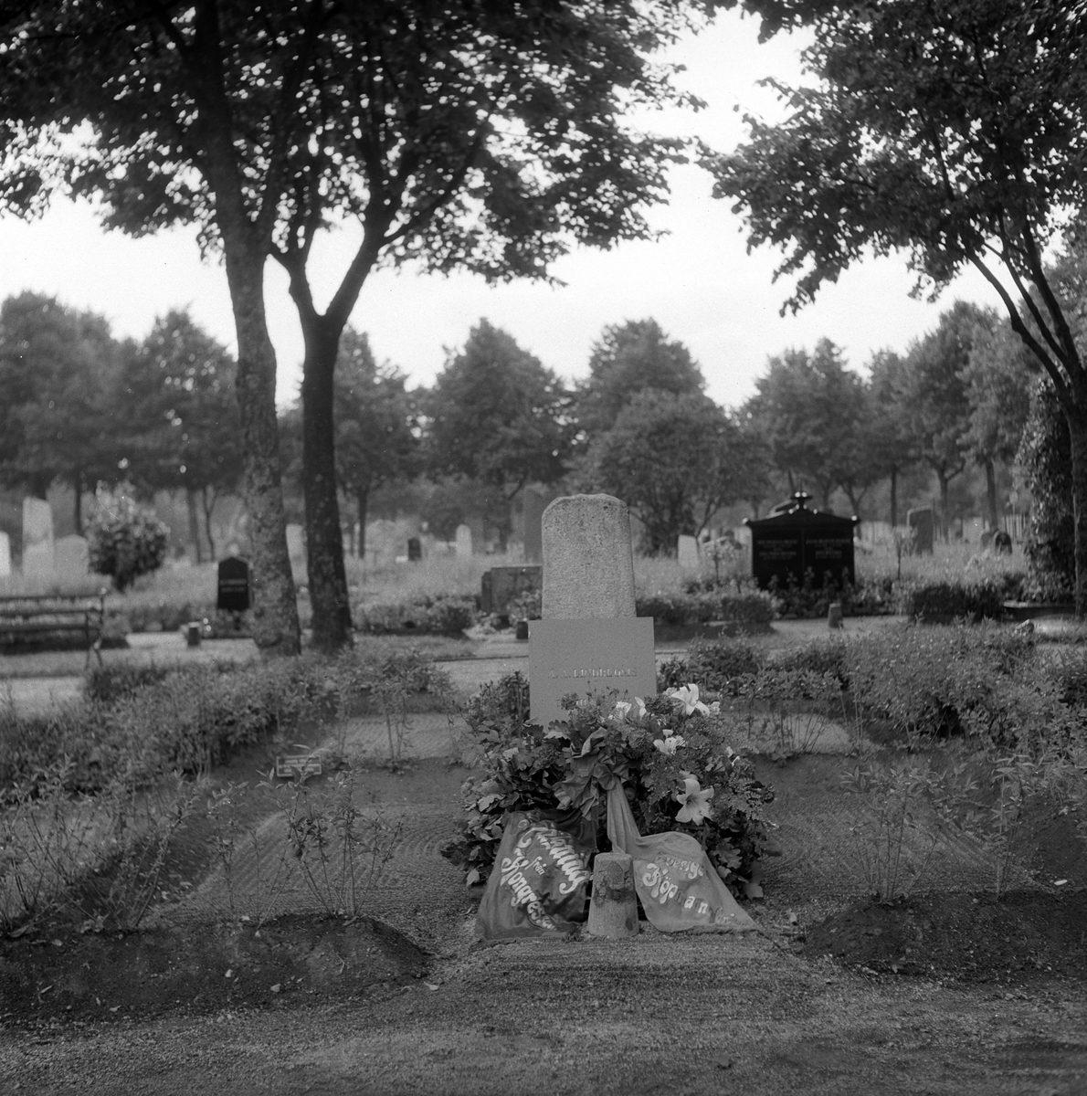 Reportage för tidningen Köpmannen. Edvard Lindbloms grav. 1946.