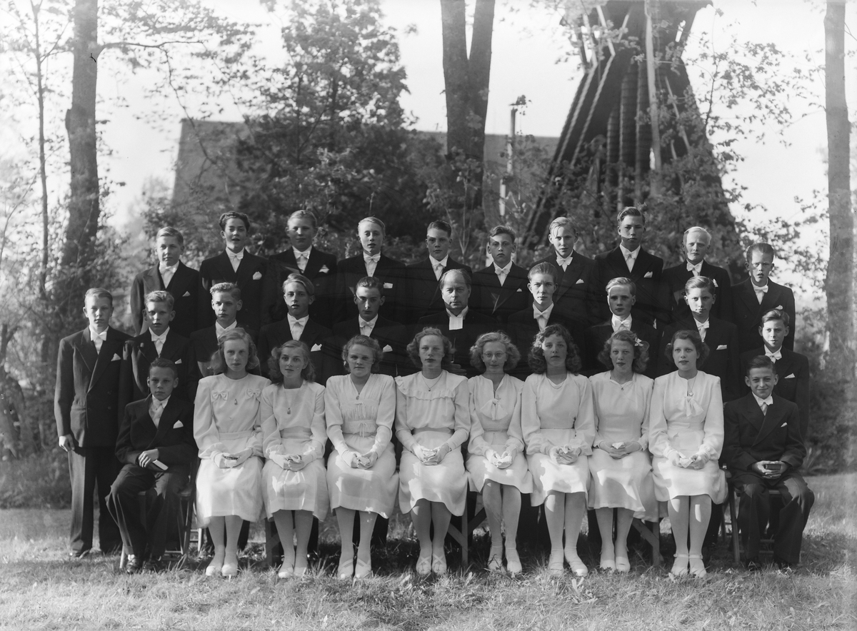 Konfirmation, 29 konfirmander och kyrkoherde Strömberg.