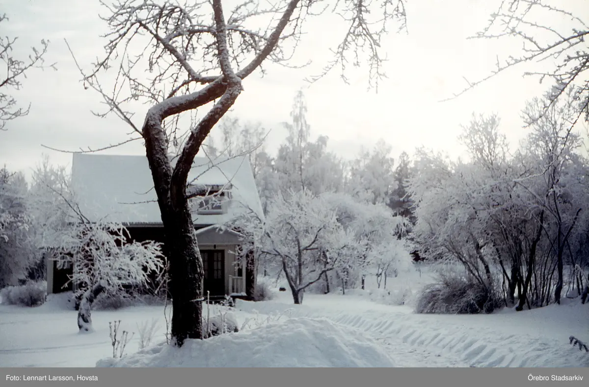 Mycket snö vid hus i Yxtabacken i Hovsta, 1970-tal
