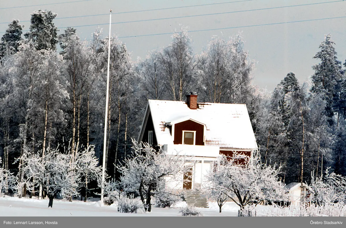 Vinter över hus i Yxtabacken i Hovsta, 1970-tal